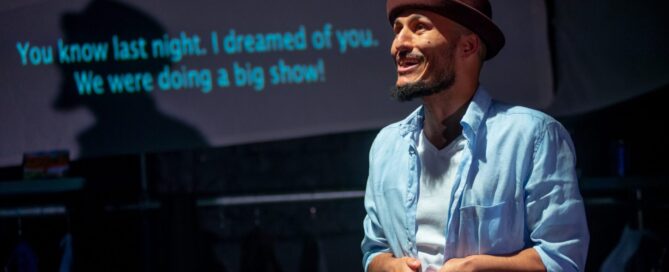 Transcript from a learning event featuring Hamzeh Al Hussien and Amy Golding discussing the experiences, triumphs and challenges touring their play Penguin, plus Alia Alzougbi and Matt Burman