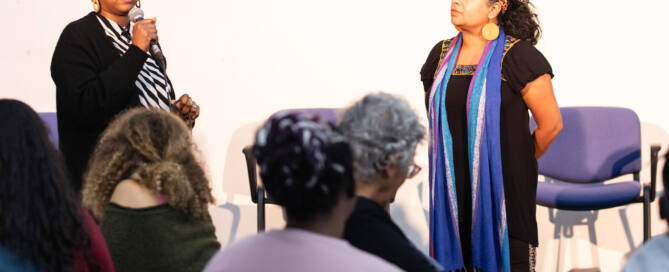 Discussing the Re-imagine Community Practice event in Bristol, commissioned by performingborders and Counterpoints Arts for Platforma 2023.