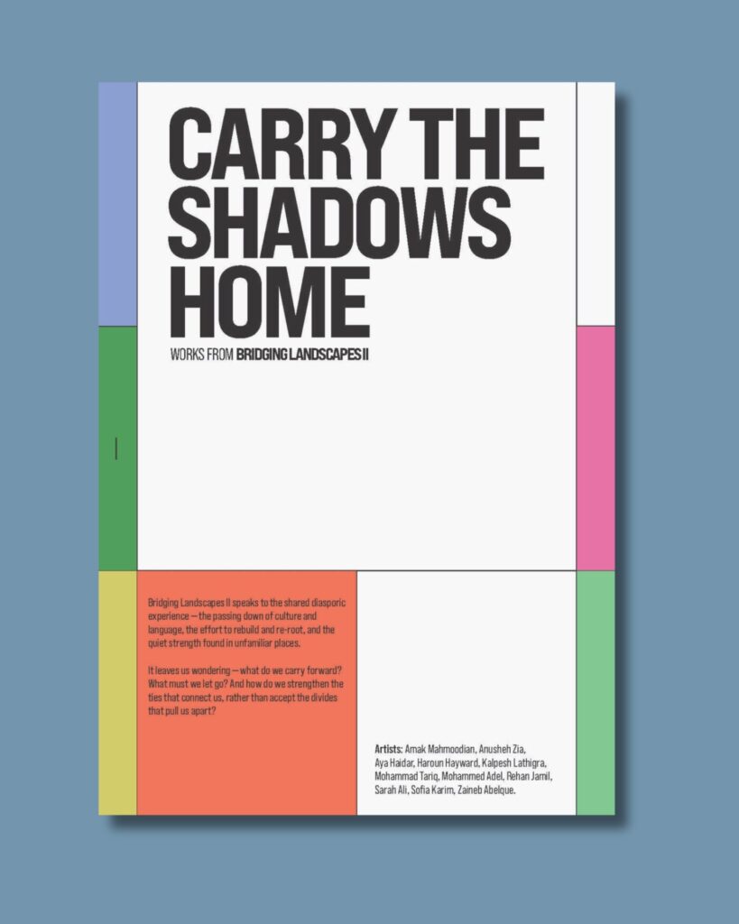 Featuring work by: Amak Mahmoodian, Anusheh Zia, Aya Haidar, Haroun Hayward, Kalpesh Lathigra, Mohammad Tariq, Mohammed Adel, Rehan Jamil, Sarah Ali, Sofia Karim, Zaineb Abelque.